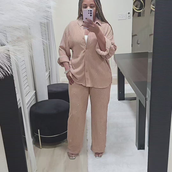 Prance and Shimmer Crystal Longsleeve Set Tan (Tall Girl Friendly, Can Size Down)