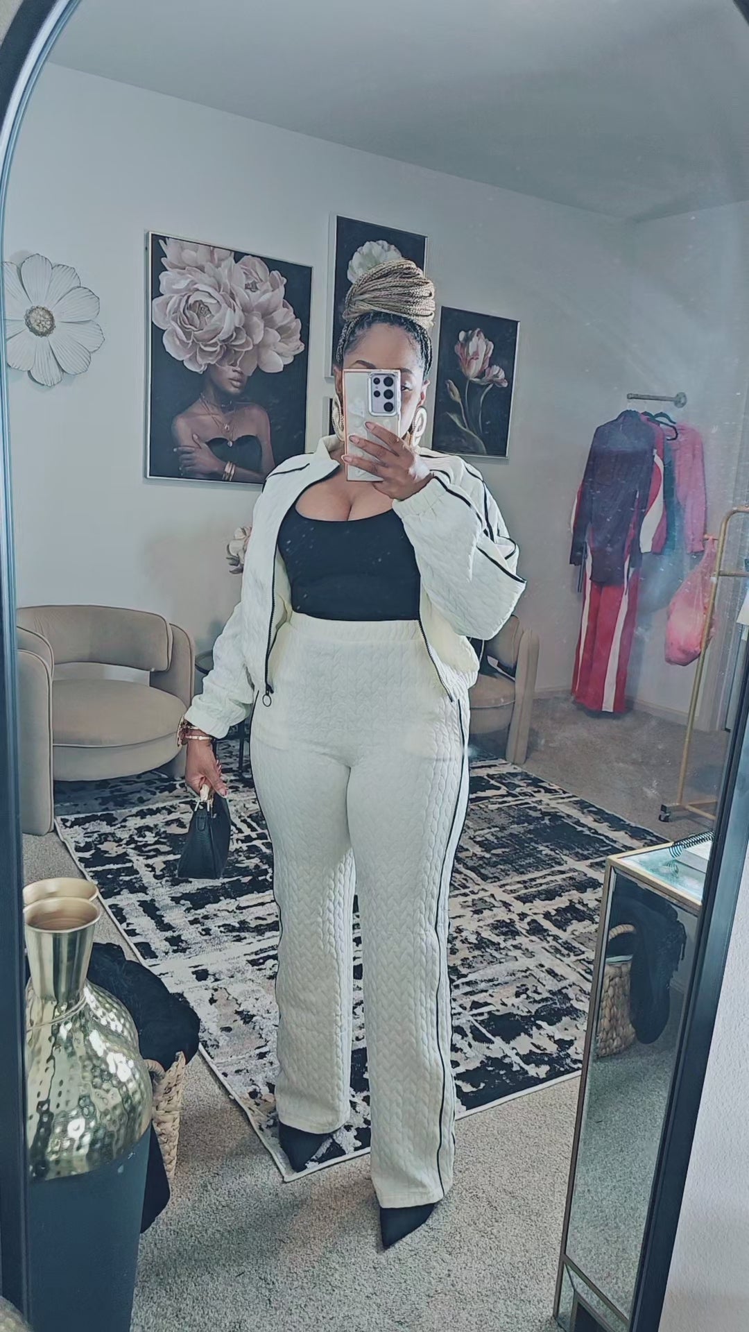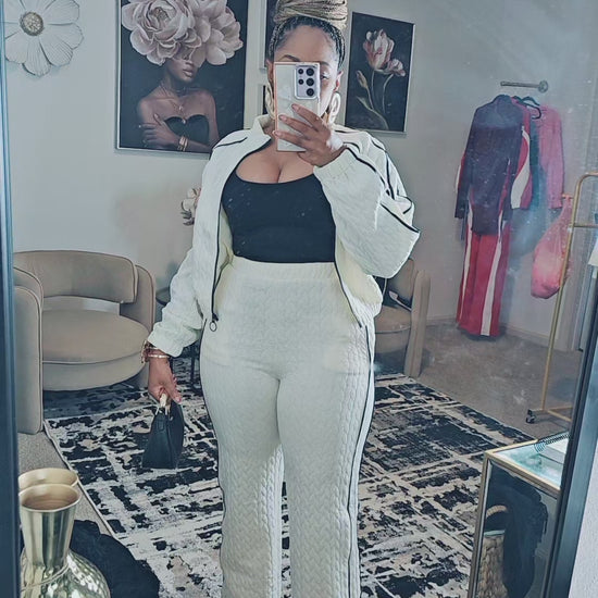 The Ivy Luxe Quilted Set blends comfort and sophistication with its quilted jacquard fabric and sleek contrast piping. The zip-up mock-neck jacket and straight-leg pants feature elastic waistbands for an easy, flattering fit. Finished with side pockets and soft stretch, this set is perfect for elevated everyday style. Wear it to brunch, travel days, casual Fridays, errands, and any moment you want to look polished with zero effort.