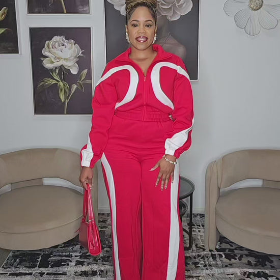 Premium red fabrication with bold, couture-inspired white accents