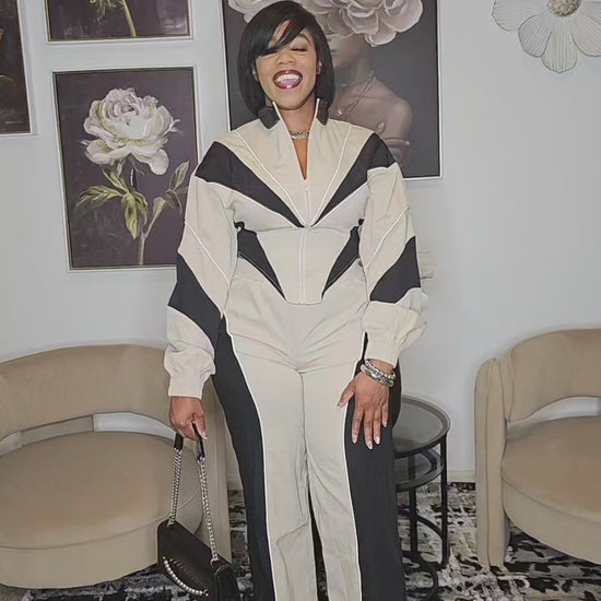 Step into confidence with The Power Move Colorblock Set. This bold two-tone ensemble features a zip-up cropped jacket with structured paneling and matching high-waist wide-leg pants for an effortlessly elevated look. The sleek black and taupe contrast gives off major boss-energy—perfect for brunch, travel days, or turning heads on the go.